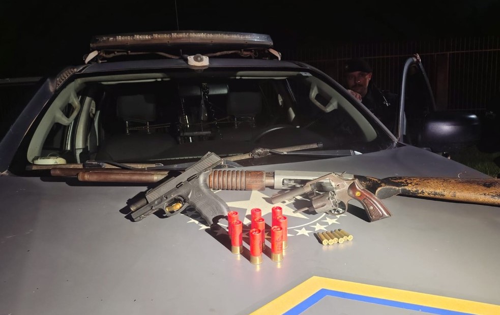 Na abordagem, a polícia encontrou uma espingarda calibre 12, uma pistola .45 e um revólver .38, todos sem documentação. Algumas armas tinham a numeração raspada.