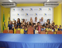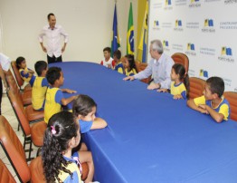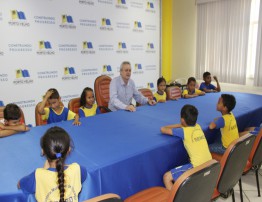 Alunos do ensino fundamental são recebidos no gabinete do Prefeito