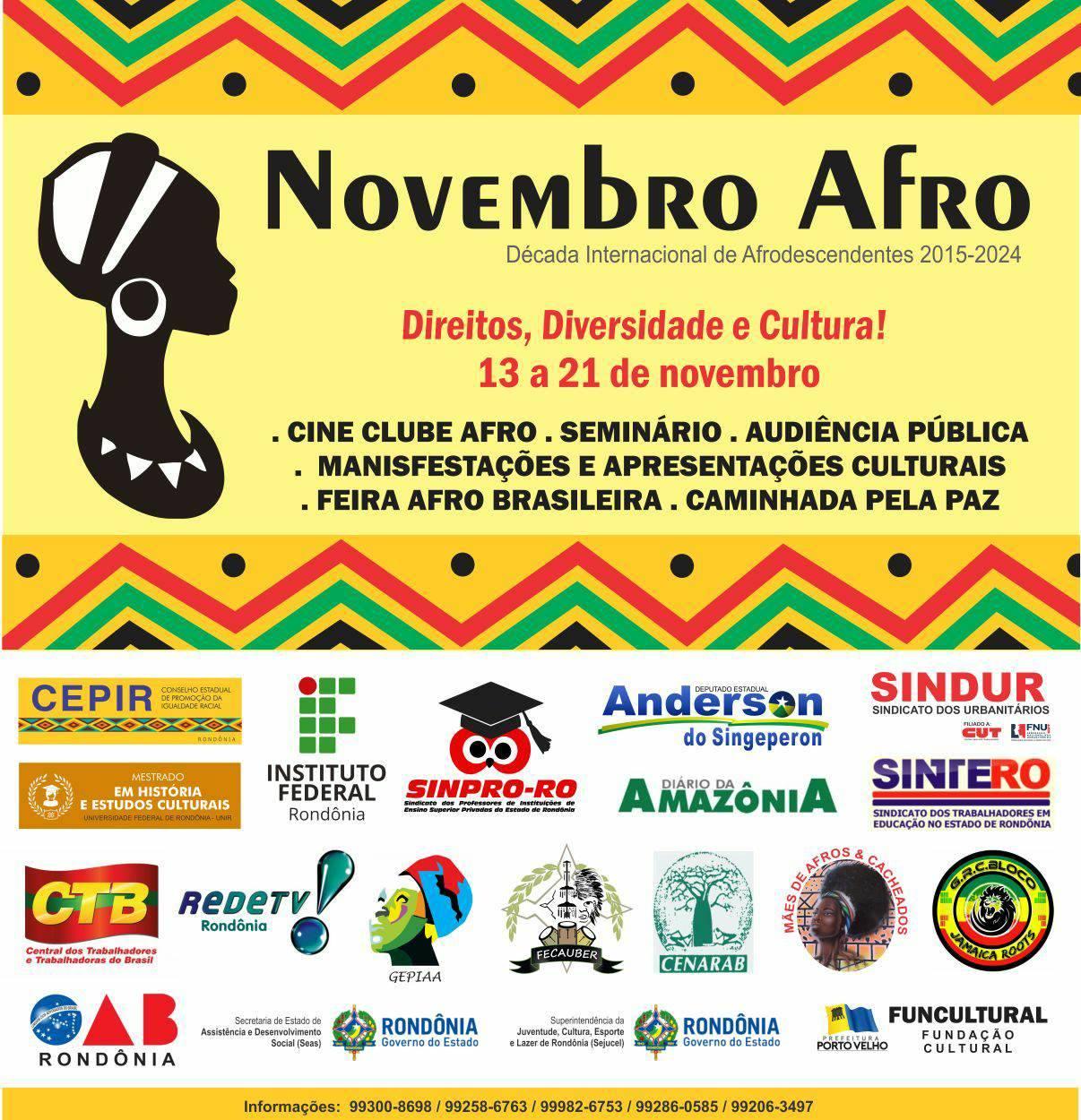 As palestras, cine clube, seminários e algumas das apresentações culturais serão realizados no Museu da Memória Rondoniense. A feira cultural afro-brasileira, exposição de capoeira serão realizadas no Mercado Cultural e a Caminhada de combate ao racismo, discriminação e intolerância religiosa será hoje, dia 15 de novembro na Estrada de Ferro Madeira Mamoré.