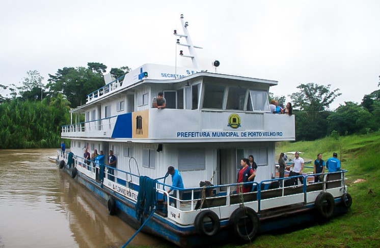 A Prefeitura de Porto Velho, através da Secretaria Municipal de Saúde (Semusa), finaliza os preparativos do barco saúde Dr. Floriano Riva Filho para deslocamento ao distrito de Nazaré, no baixo Madeira, onde a cheia do rio Madeira tem causado transtornos à comunidade. Com a água subindo rapidamente, a unidade de saúde local não pode mais funcionar plenamente, afetando o atendimento à população.