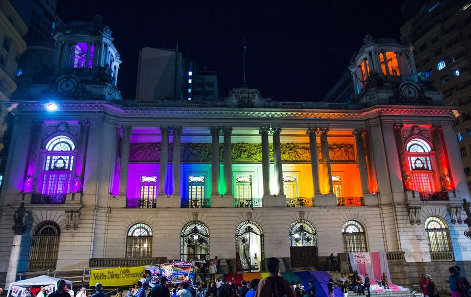 A fachada da Câmara foi iluminada com as cores do arco-íris no início da noite. Houve um protesto contra a falta de apoio do prefeito à Parada LGBT.