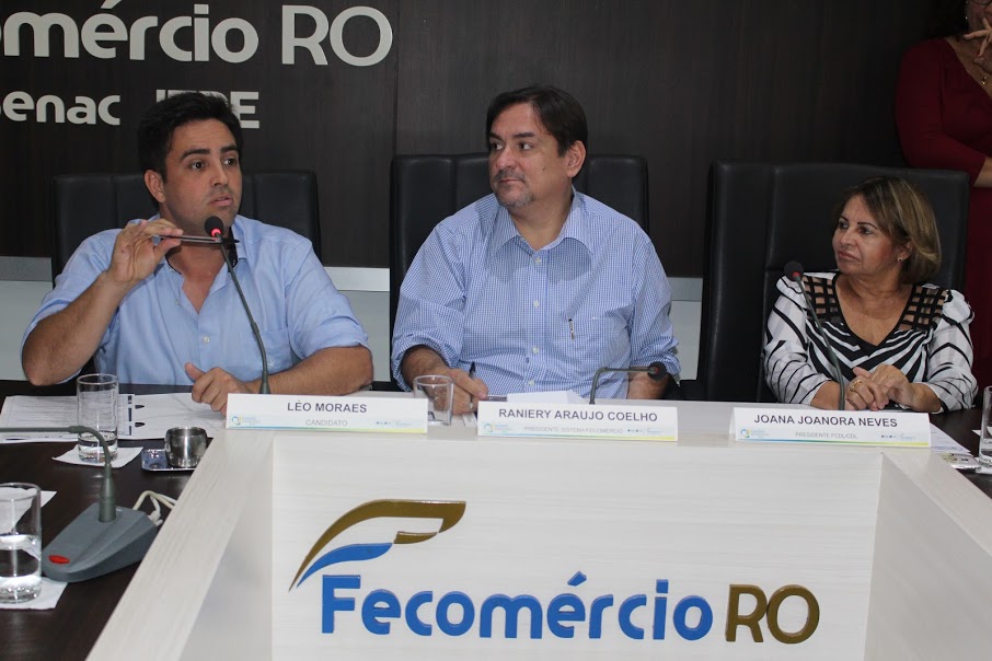 fecomercioleomoraesA Fecomércio-RO e a FCDL/CDL-PVH realizaram na segunda e terça-feira desta semana, reuniões em dias distintos com os dois candidatos a prefeito de Porto Velho, Léo Moraes e Hildon Chaves, na sala de Reuniões da Federação. Os candidatos puderam ter um diálogo aberto com empresários e os representantes de sindicatos e mostraram detalhes de suas propostas para a melhoria do ambiente de negócio na capital.