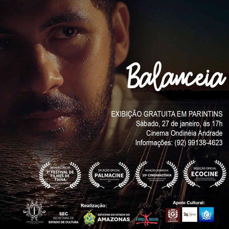 Uma sessão de cinema em Parintins promete emocionar a plateia, no próximo sábado, dia 27 de janeiro. O filme exibido será Balanceia, de Juraci Júnior e Thiago Oliveira, que mostra a viagem de um turista à ilha tupinambarana, em pleno festival folclórico. As memórias sobre a festa pedem espaço na mente do personagem, durante a viagem de volta no barco sobre as águas barrentas do Rio Amazonas. Além do peito pulsar com as lembranças da marujada dos bois Garantido e Caprichoso, o protagonista se impressiona com ribeirinhos que desafiam as águas e comovem os viajantes.