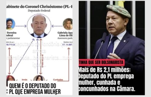 Parece que o deputado federal coronel Chrisostomo (PL-RO) será cassado, se depender do advogado de Rondônia, Caetano Neto. Chrisostomo vai dançar YMCA no ostracismo por nomear parentes no gabinete. Membros do PL na Câmara Federal, o partido já discute sobre expulsão do parlamentar. De acordo com Caetano Neto, o parlamentar transformou o gabinete em “reunião de familiares” quando nomeou parentes. E pior, cita o causídico, “Dep. Chrisóstomo além do crime de nepotismo, contratar parentes, cometeu também, crime de Improbidade Administrativa uma vez que incidiu no enriquecimento ilícito. devendo responder ação correspondente para ressarcimento aos cofres públicos dos valores pagos aos familiares ilegalmente, hoje, em valores atualizados, cifras podem ultrapassar R$ 3 milhões de reais.