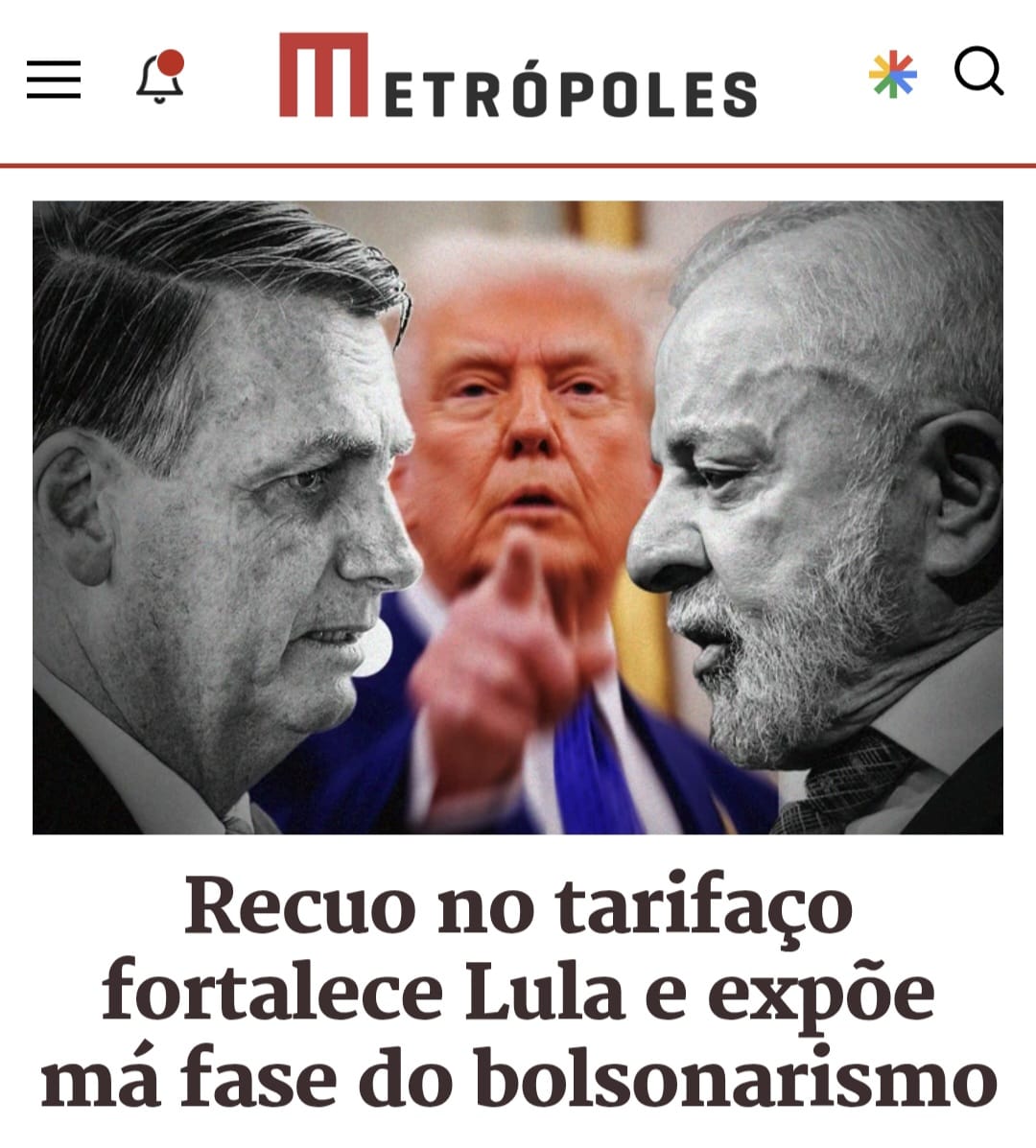 Enquanto Lula se declarou feliz com a remoção das tarifas adicionais, o deputado Eduardo Bolsonaro (PL-SP) procurou negar a derrota. O parlamentar está nos Estados Unidos desde fevereiro instigando ações de Washington contra o Brasil em benefício de seu pai, condenado no STF por tentativa de golpe de Estado. Eduardo Bolsonaro minimizou o papel do Itamaraty e alegou que a decisão de Trump se deve a fatores internos, “especialmente a necessidade de conter a inflação americana em setores dependentes de insumos estrangeiros”. (Globo)