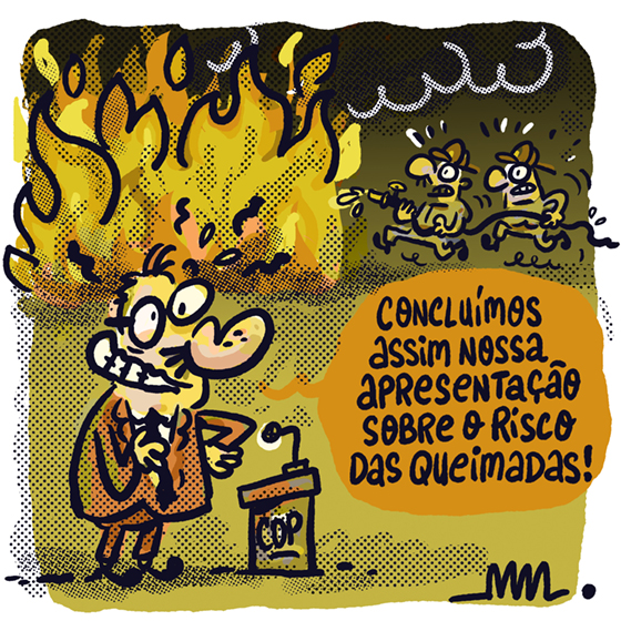 A COP30 termina hoje em Belém, mas a quinta-feira, que deveria ser dedicada à costura de acordos sobre o clima, foi marcada por um incêndio na chamada Blue Zone, onde ocorrem as negociações e ficam as instalações da maioria dos países participantes. O fogo começou por volta das 14h no estande brasileiro (vídeo), e as equipes de segurança não conseguiram controlá-lo, sendo necessário acionar os bombeiros. A despeito da confusão e da correria, ninguém se feriu, embora pessoas tenham sido atendidas pelas equipes médicas por inalarem a fumaça. De acordo com os bombeiros, o incêndio pode ter sido causado por um forno de micro-ondas. (UOL)-Charge Marcelo Martinez