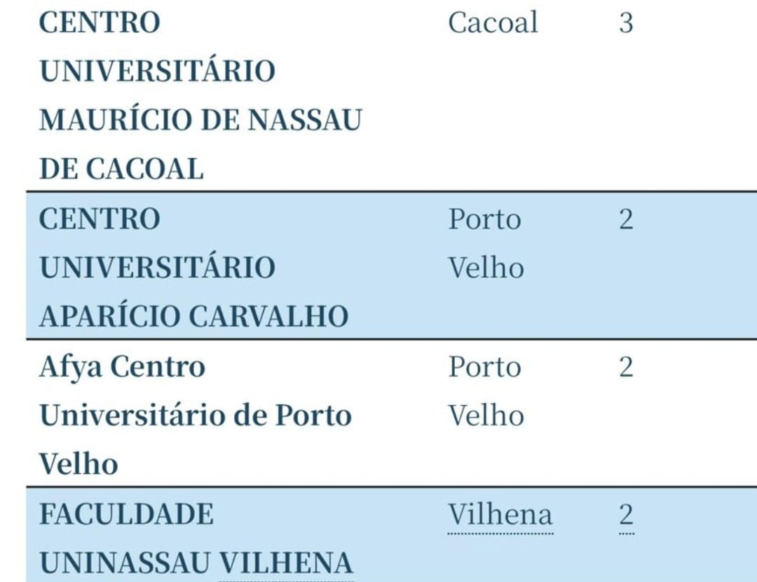 O Conselho Federal de Medicina vai fazer sindicancia nas faculdades de Medicina de Rondônia? O CFM se meteu nas decisões do STF e foi desautorizado porque não era atribuições deste órgão. Agora fiscalizar cursos de medicina faz parte das atribuições do CFM. Quatro cursos de Medicina em funcionamento em Rondônia foram enquadrados entre os reprovados no Exame Nacional de Avaliação da Formação Médica (Enamed), cujos resultados foram divulgados nesta segunda-feira, 19, pelo Ministério da Educação (MEC): Centro Universitário Aparício Carvalho (FIMCA), em Porto Velho, que obteve conceito 2; o Afya Centro Universitário de Porto Velho, também com conceito 2; a Faculdade Metropolitana (UNNESA), igualmente localizada na capital, que recebeu conceito 1 — o mais baixo da escala —; e a Faculdade UNINASSAU Vilhena, no Cone Sul do estado, com conceito 2.