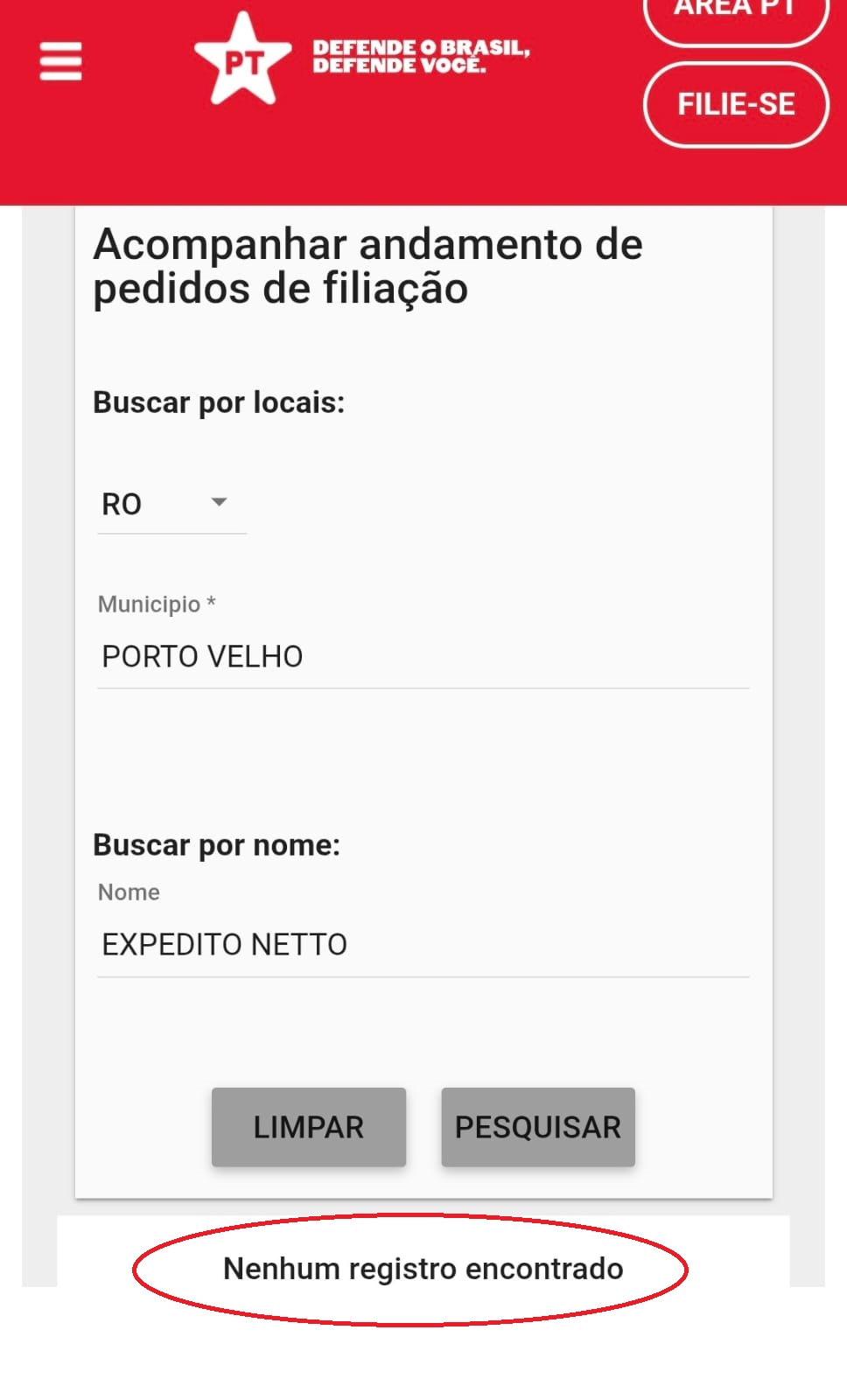 A filiação de Expedito Netto ao PT com a presença de Lula deverá ser adiada para amanhã, quarta-feira. Por enquanto, segundo o site do PT, ele não está oficialmente filiado embora tenha assinado ficha na semana passada em Porto Velho. Programada para hoje, 20, não o sera porque o presidente cumpre agenda oficial no Rio Grande do Sul onde faz entregas de casas populares e visita instalações de um porto e assina ordem de serviço para construção de navios. A coluna tentou falar com o pré-candidato do PT ao governo de Rondônia e não obteve sucesso.