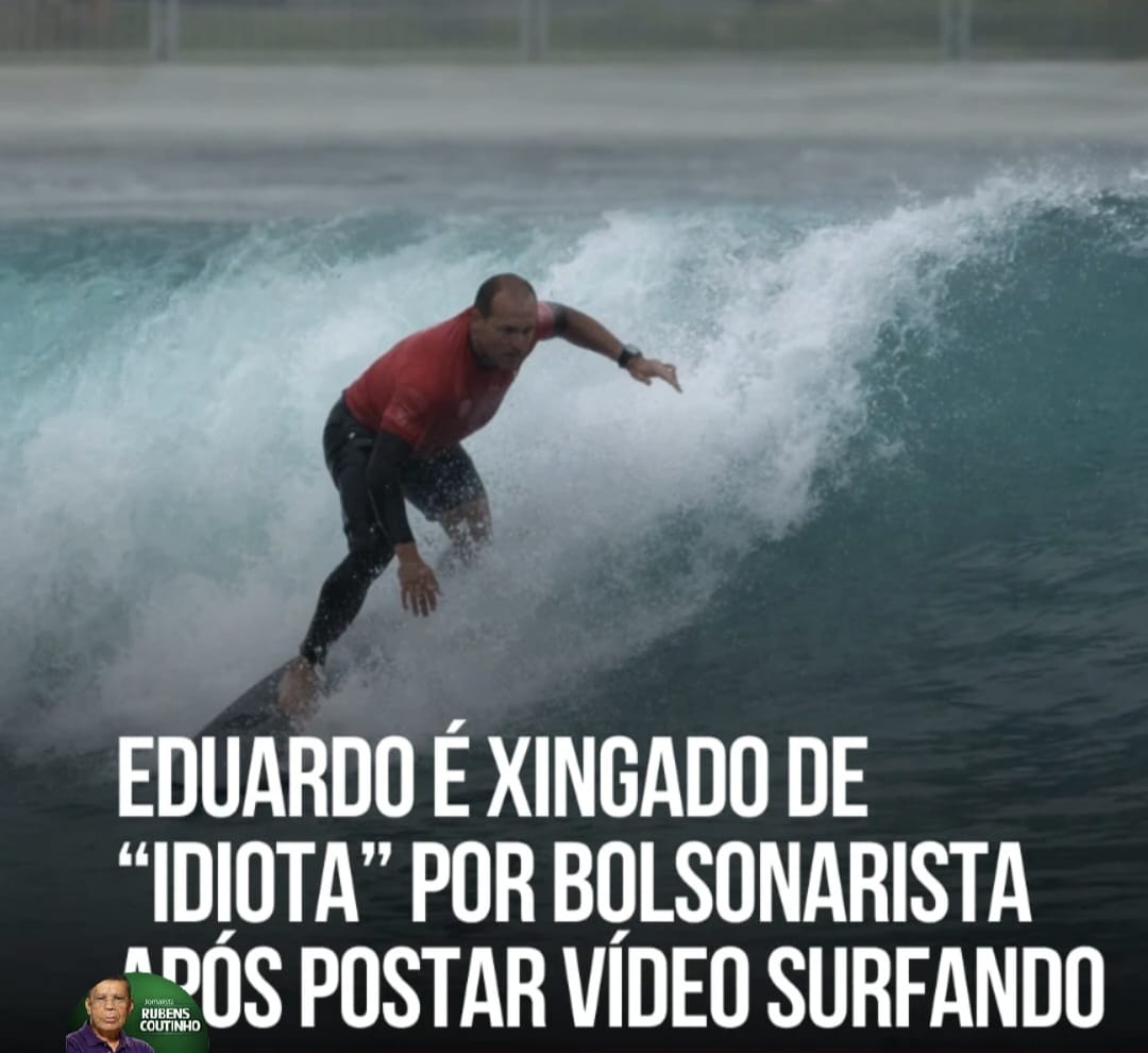 Ele está pouco se lixando pelo pai. Tá nem aí verdadeiramente. O deputado federal cassado Eduardo Bolsonaro (PL) esteve nos Emirados Árabes Unidos em fevereiro de 2026 como parte de uma agenda internacional ao lado do irmão, o senador Flávio Bolsonaro (PL). Durante a viagem, fazendo jus ao apelido de “Vagão”, corruptela de vagabundo, dado pelo próprio pai, o ex-presidente Jair Bolsonaro (PL), que está preso, ele aproveitou para surfar.