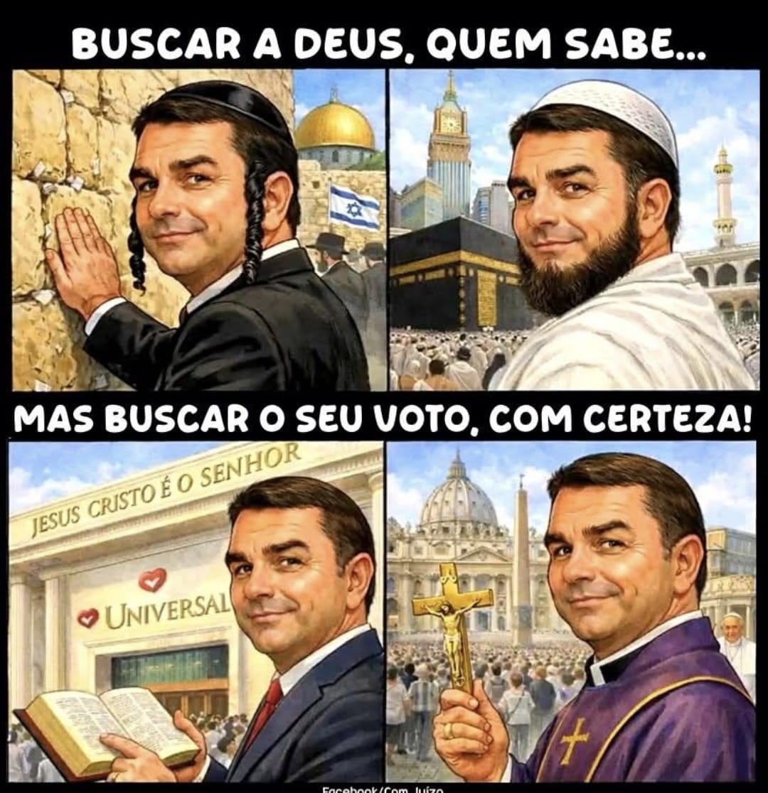 Pelo lado da oposição, o senador Flávio Bolsonaro (PL-RJ), repete a estratégia do pai e dá ênfase ao tom religioso de sua campanha, incluindo um banho no Rio Jordão, durante viagem a Israel. O objetivo é estreitar os laços com os evangélicos, parcela do eleitorado apontada como mais fiel ao bolsonarismo. (Estadão)