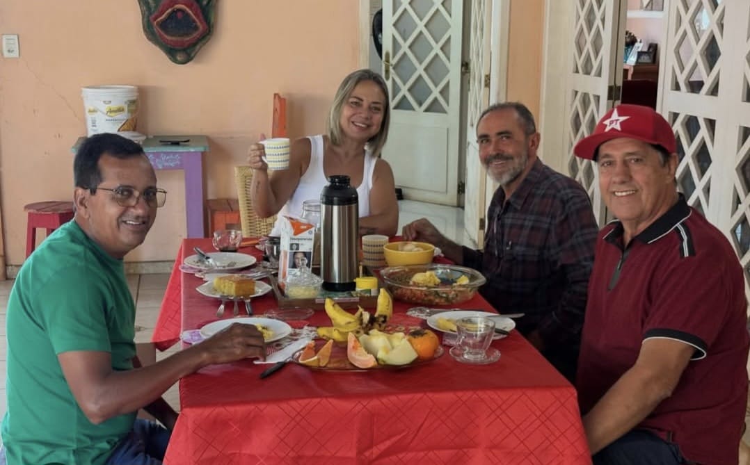 A jornalista e ativista Luciana Oliveira recebeu esta semana a cúpula do PT de Rondônia para um café da manhã na residência dela em Porto Velho. Ao lado do esposo advogado Ernandes Segismundo, ela foi anfitriona o presidente da legenda estadual, Ernesto Ferreira e o ex-presidente, Anselmo de Jesus.