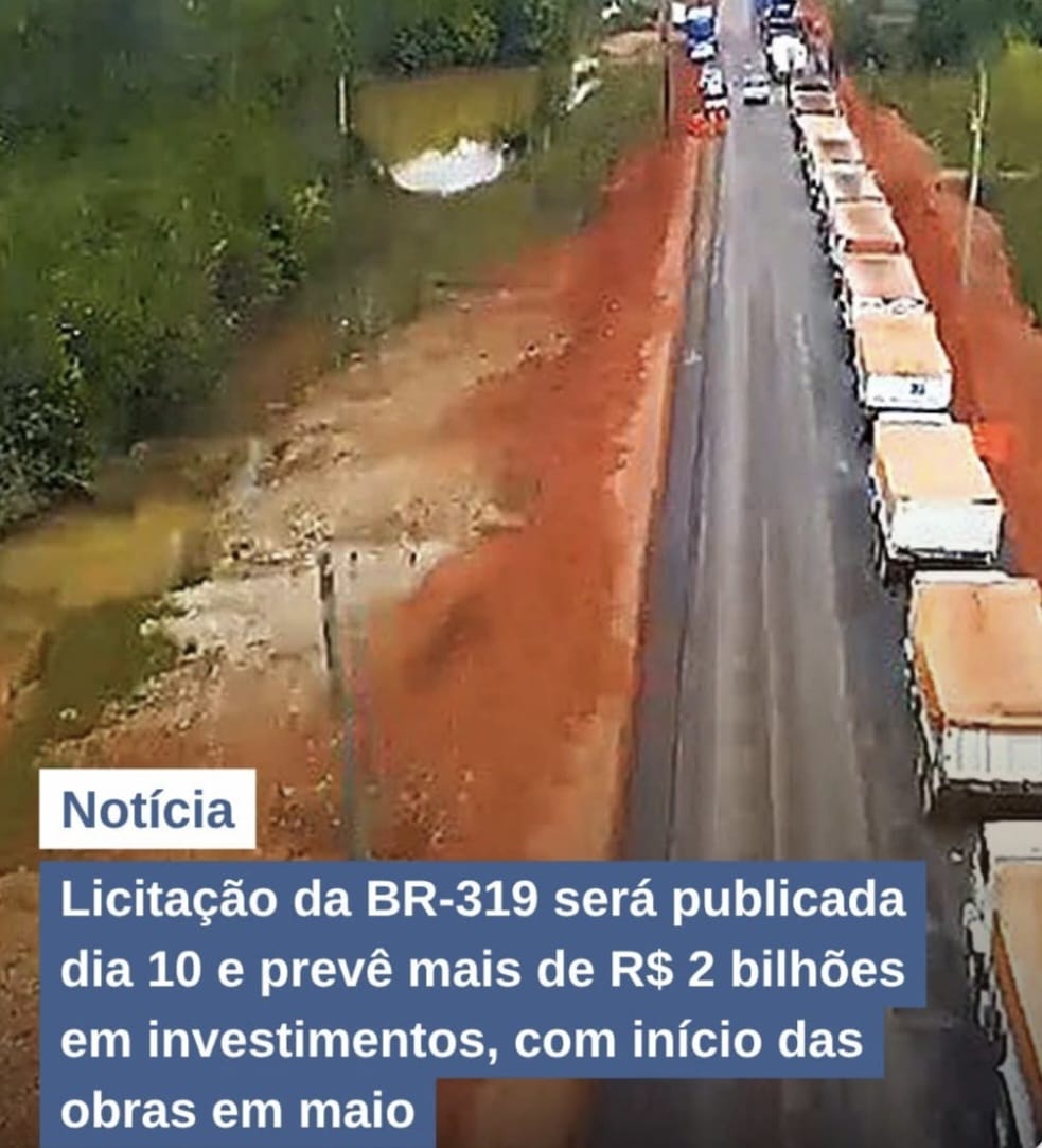 Finalmente, após ajustes, a BR 319 será restaurada no “Trecho do Meio” castigado pelas chuvas e anos sem reparos devido à embargos ambientais. O anúncio da retomada das obras na BR-319, que liga Manaus a Porto Velho, ganhou forte repercussão política e institucional no estado após o Ministério dos Transportes assinar, na semana passada, o ato para a licitação dos serviços de manutenção e pavimentação da rodovia. Anúncio histórico reacende promessa de reconstrução da BR-319, com edital previsto para o dia 10 de abril, início das obras em maio e mais de R$ 2 bilhões em investimentos. O governo Lula finalmente satisfaz os anseios das populações dos estados de Rondônia e Amazonas. O senador Confúcio Moura (MDB-RO) e o ex-ministro dos Transportes, Renan Filho (MDB-AL) tiveram papel fundamental.
