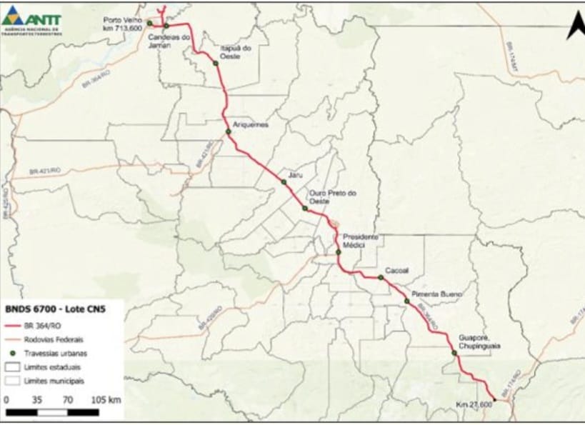 O Lote CN5, denominado Rota Agro Norte, com uma extensão total de 686,700 km e compreende o seguinte trecho: BR-364/RO, no trecho compreendido entre o entroncamento com a BR-435(B)/RO-399 (p/ Colorado do Oeste) e o entroncamento com a BR-319 (Porto Velho – Av. Jorge Teixeira); BR – 364/RO (Contorno Ji Paraná), trecho compreendido entre o entroncamento com a BR364 (Início Anel Viário Ji-Paraná) até o entroncamento BR-364 (Fim Anel Viário Ji-Paraná); Acesso Porto Novo, nos trechos compreendidos entre o entroncamento com a BR-364 na altura do Km 693,300 e a Estrada da Penal / RO-005, entre a Estrada da Penal / RO-005 e o Acesso 1, e entre a Estrada da Penal / RO-005 e o Acesso 2.