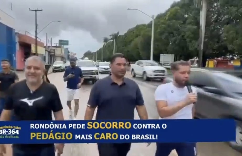 O vereador Everaldo Fogaça (PSD), de Porto Velho, participou ontem de uma caminhada sob chuva até Candeias do Jamari, em protesto contra o alto valor do pedágio. Realmente está alto porque a cobrança está sendo feita antes dos benefícios. Se a concessionária reduzisse pela metade todos ficariam satisfeitos.