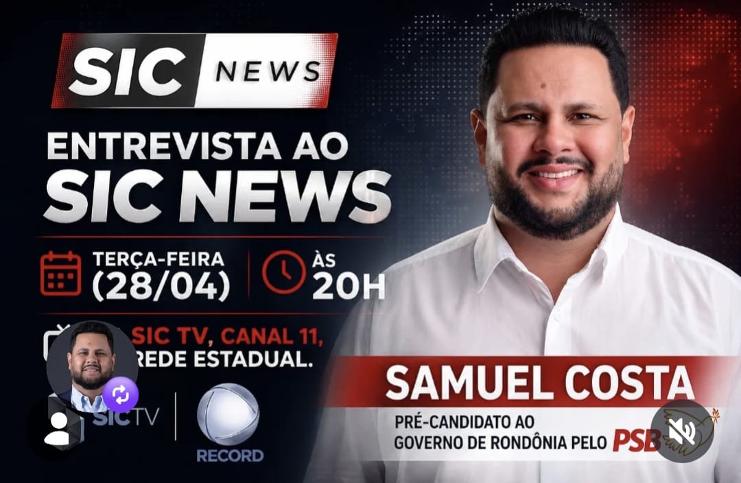 Falando em Samuel Costa, publicou pré-candidato ao governo de estará, nesta terça-feira, 28, às 20h, ao vivo no SIC NEWSm (canal 11), em rede estadual. “Vou bater um papo com os jornalistas Everton Leone e Natally Missias sobre a nossa pré-candidatura ao Governo de Rondônia e, principalmente, sobre as propostas pra mudar de verdade a vida dos rondonienses”, disse.