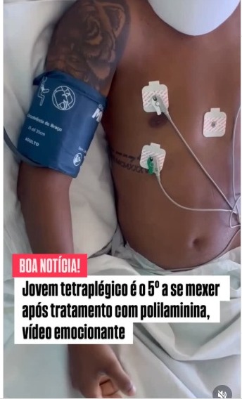 Sofreu lesão medular completa (C4) após um mergulho. Recebeu a aplicação no dia 07 de janeiro, dentro da “janela de 72h”. Já consegue levantar os braços, fazer força com as mãos e recuperou a sensibilidade até o umbigo. Não é milagre. É ciência! Ele é o 5º paciente a apresentar resultados impressionantes com esse tratamento experimental. O médico Mitter Mayer, que coordena o grupo de trabalho no Espírito Santo, reforça: “A força está reaparecendo onde antes havia apenas ausência”. O Brasil na vanguarda da medicina regenerativa!