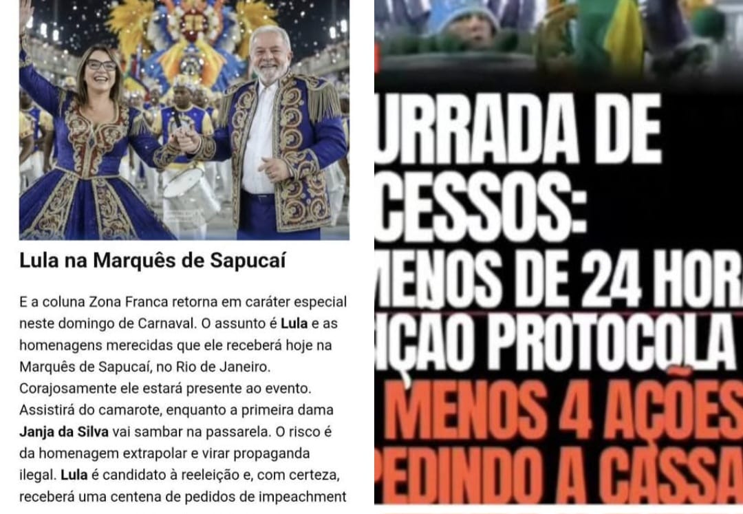 Doravante o presidente Lula vai enfrentar uma tempestade de ações contra o desfile da Escola de Samba Acadêmicos de Niterói. Era previsível. Lula sabia do risco e aceitou o convite para assistir ao desfile no camarote do prefeito do Rio, Eduardo Paes (PSD). Há uma grande possibilidade de inelegibilidade haja vista exemplos anteriores. O ministro da Fazenda, Fernando Haddad já está a postos para substituir Lula em caso de impedimento. O ideal seria, neste momento, Haddad já se posicionar como candidato à vice-presidente da República. O impeachment de Dilma Rousseff ocorreu sem ela ter cometido crime algum. Já no caso de Lula, há sinais de cometimento de irregularidades. Esta coluna antecipou que isso poderia ocorrer. Estava na cara.