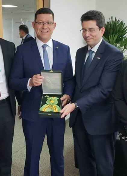 BRASILIA-“Ontem (quarta-feira), pela correria, não houve tempo de publicar. Junto com Wilson Witzel, João Dória e o presidente da OAB, Cláudio Lamachia, fui condecorado com a medalha da Ordem do Mérito do Trabalho Getúlio Vargas. Recebemos das mãos do vice-presidente, general Hamilton Mourão e do ministro interino do Trabalho, Ricardo Leite. Compartilho mais essa honraria com minha família e o nosso estado. Vai entrar para coleção”, postou ontem a noite nas redes sociais o governador eleito de Rondônia, coronel Marcos Rocha (PSL).