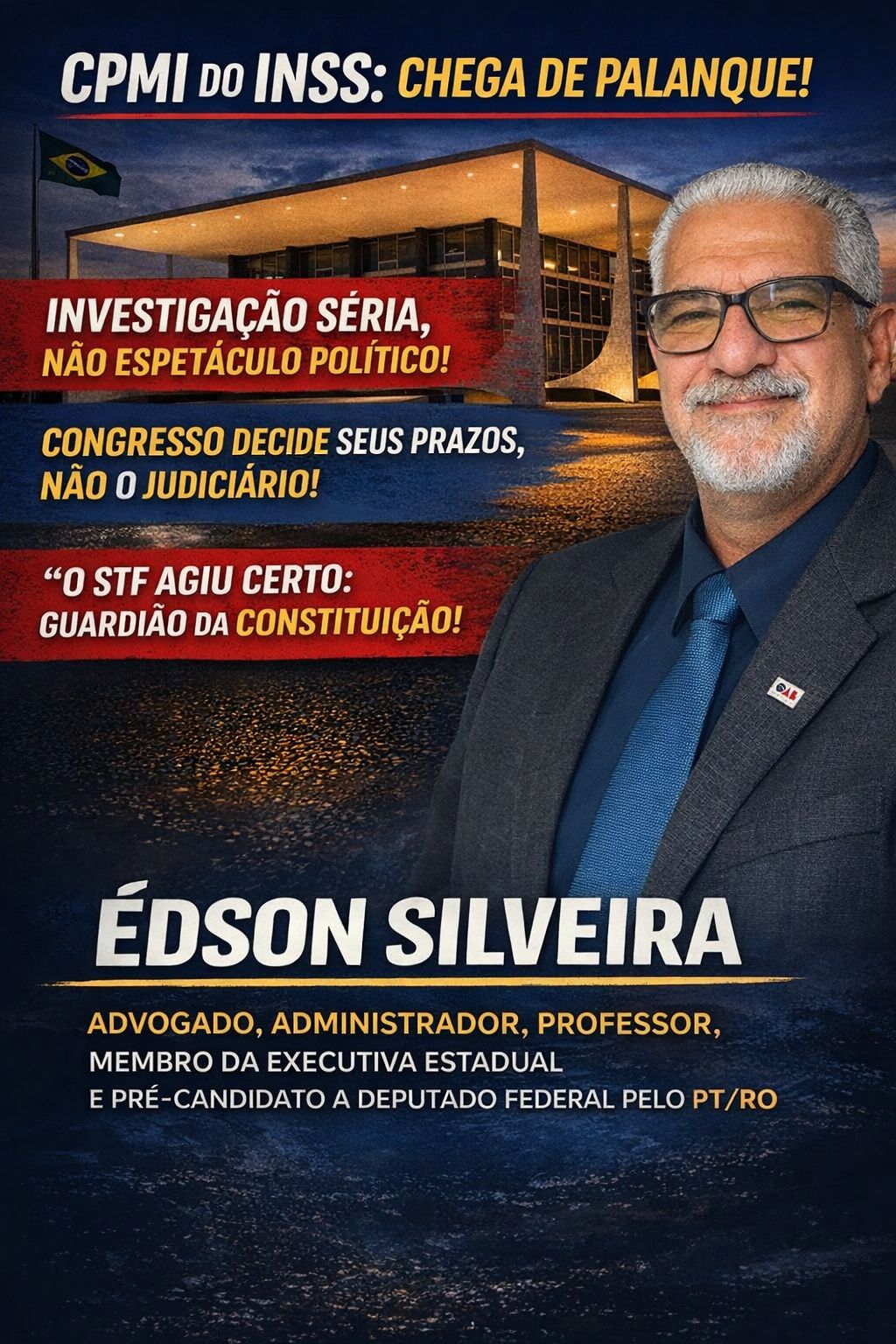 advogado, administrador, professor, membro da executiva estadual e pré-candidato a deputado federal pelo PT/RO