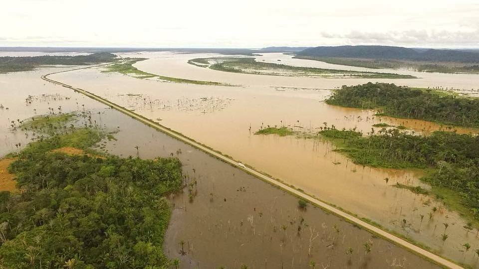 Elevação do nível do Madeira volta a preocupar. Essas imagens foram registradas, hoje, na região da antiga Vila Mutum Paraná. Este foi o primeiro trecho da BR 364 que ficou inundado em 2014 e deixou o Acre isolado via terrestre