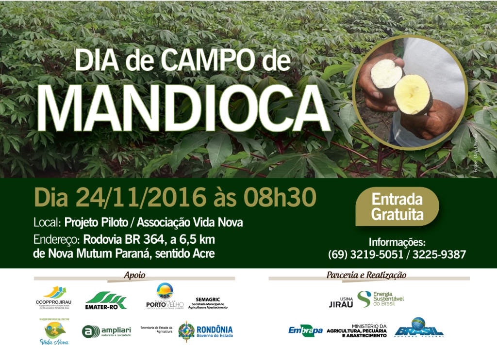 O Dia de Campo de Mandioca faz parte do Projeto Piloto de Uso da Faixa Deplecionável do reservatório da Usina Hidrelétrica Jirau e das Áreas de Terra Firme de seu Entorno, uma parceria entre Embrapa Rondônia e a ESBR. “Vale ressaltar que a importância deste evento ultrapassa as comunidades locais, haja vista que a mandioca é uma cultura presente em quase todas as pequenas propriedades rurais brasileiras, seja para consumo familiar, seja para fins comerciais”, complementa Oliveira.