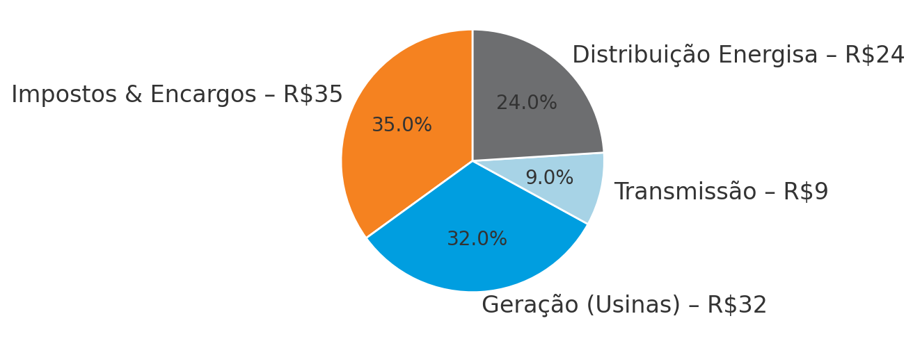 A Energisa detalha que, em uma conta de R$100, a divisão é a seguinte: