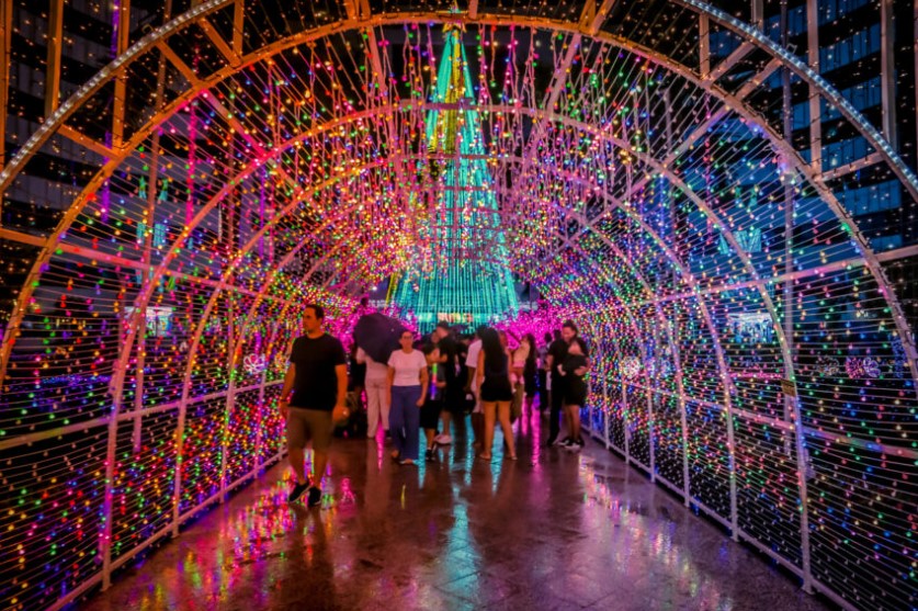 A decoração do “Jardim Encantado” tem túnel de luz logo no Portal de Entrada; borboletas gigantes; bosque de cerejeiras cor-de-rosa; uma árvore digital no meio do jardim com projeção de imagens animadas e trilhas sonoras; céu nevado; além do letreiro iluminado do Natal de Luz e das fachadas dos prédios que viraram grandes caixas de presentes luminosas.