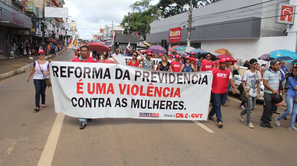 No dia 15 de março, Dia Nacional de Luta Contra as Reformas Previdenciária e Trabalhista propostas pelo governo ilegitimo de Michel Temer, convocadas pela Frente Brasil Popular e Povo Sem Medo e inicio da greve nacional da educação convocada pela CNTE, o estado de Rondônia se movimentou como nunca antes visto no período recente. Pelo menos nove cidades fizeram atos que ao todo mobilizaram cerca de 10 mil trabalhadores e trabalhadoras. Diversas categorias cruzaram os braços, como os Correios em municípios como Vilhena e Porto Velho, eletricitários da Eletrobras, Eletronorte e Ceron em todo estado, servidores da Fiocruz na capital e da saúde em municípios como Vilhena, além das centenas de professores da rede municipal e estadual de educação, que seguem mobilizados e em greve pelo menos até o dia 28, dia do votação da PEC 287 na Câmara Federal.