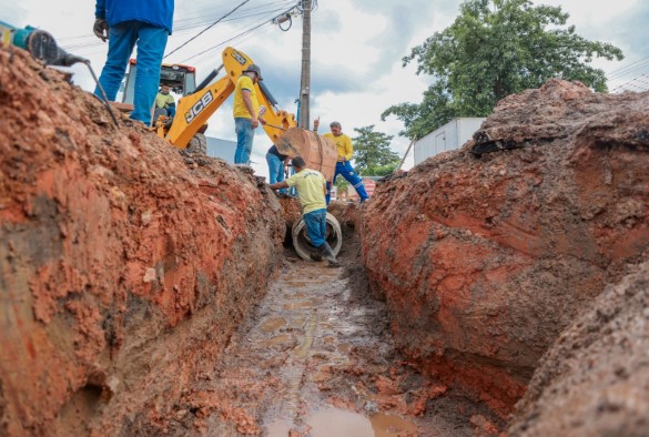 Para reforçar ainda mais a drenagem, foi aberta uma vala paralela à av. Rio de Janeiro, a partir da rua Negreiros até a sede do Clube da OAB/RO. Ali, serão instaladas manilhas para fazer a ligação com a tubulação que passa sob o canteiro central da Rio de Janeiro, ação que vai reforçar o escoamento das águas.