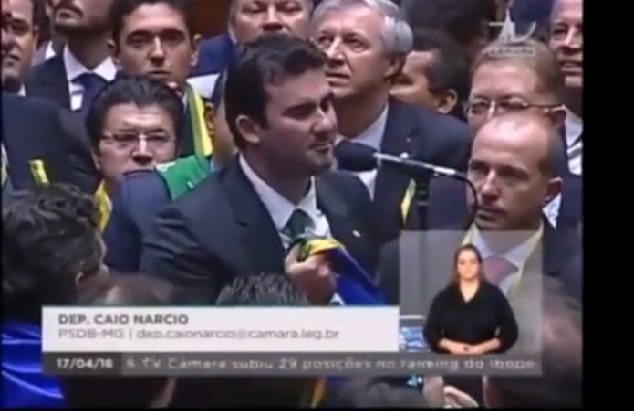“Por um Brasil, aonde o meu pai e o meu avô dizem que decência e honestidade não eram possibilidade, eram obrigação. Por um Brasil onde os brasileiros tenham decência e honestidade, por Minas, pelo Brasil, para os jovens que estão lá fora nas ruas ‘verás que o filho teu não foge á luta’. Sim”, discursou Caio.