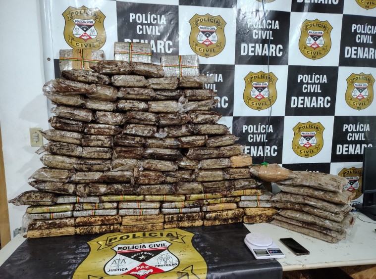 A Polícia Civil do Estado de Rondônia (PCRO), por meio do Departamento de Narcóticos (DENARC), deu cumprimento, na tarde de quinta-feira (13), a mandados de busca e apreensão expedidos pela 2ª Vara de Garantias da Comarca de Porto Velho, no âmbito das Operações NARKE e Protetor de Divisas e Fronteiras/MJ. As medidas judiciais resultaram na apreensão de mais de 100 quilos de skunk, além da prisão de um dos investigados.