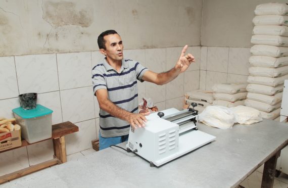 Com os R$ 10 mil obtidos no primeiro financiamento de sua vida, o padeiro reformou a batedeira, o forno e aumentou alguns itens na prateleira. “O forte aqui é o pão, que a gente faz de manhã e à tarde; vendo junto com o leite, bolos e salgados”, relata Francisco, cuja experiência vem da família toda envolvida nesse ramo, no nordeste brasileiro.