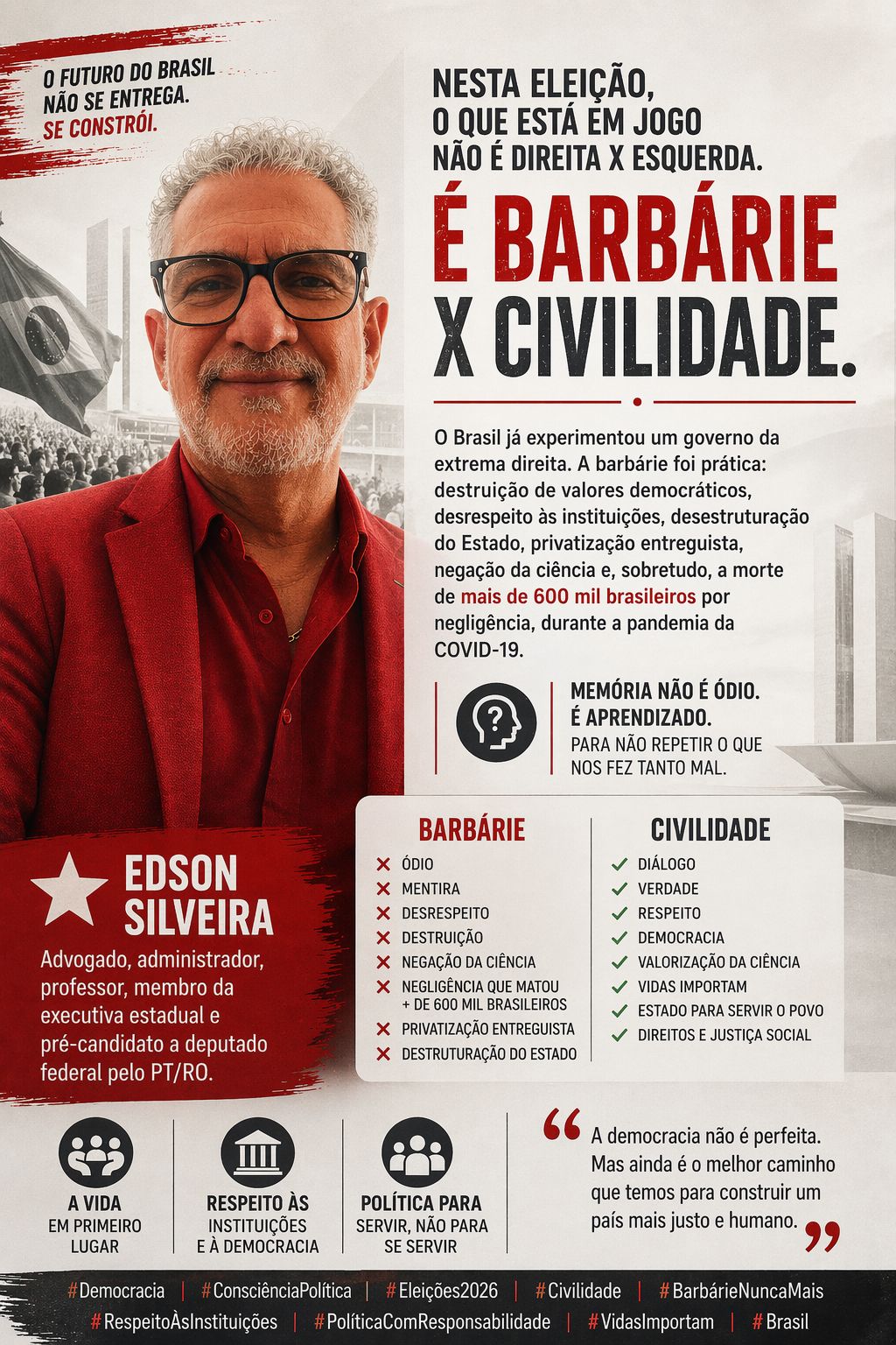 O Brasil já teve a oportunidade de experimentar, na prática, o que acontece quando a barbárie assume o comando. Não foi teoria, não foi exercício acadêmico, não foi “exagero da oposição”. Foi real. Um período marcado pelo desrespeito sistemático às instituições, pela banalização da mentira e pela tentativa de transformar o Estado em instrumento de interesses particulares. Tivemos a negação explícita da ciência justamente quando ela era mais necessária, durante a crise da COVID-19, enquanto o país assistia, perplexo, à perda de mais de 600 mil vidas. Mas, claro, sempre há quem diga que “não foi bem assim”. A memória, ao que parece, também virou território de disputa.