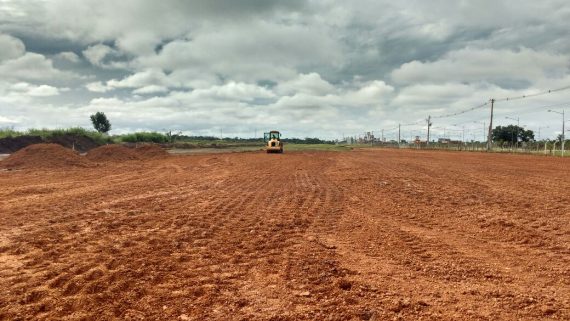 “As obras no local iniciaram com a limpeza do terreno, onde havia bastante vegetação (matagal) e aterros. Depois o DER realizou a drenagem superficial, retirando o excesso de água que acumulava no terreno e agora trabalha na terraplanagem e nivelamento da área para em seguida iniciar a imprimação e a aplicação do asfalto”, explicou o diretor do DER, Ezequiel Neiva.