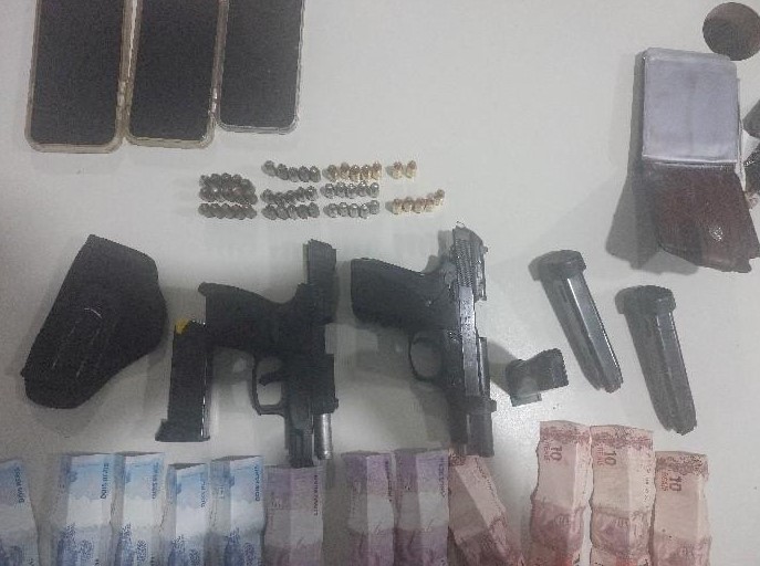 Todos os envolvidos foram presos e encaminhados à Central de Polícia, junto com o material apreendido, que inclui duas armas de fogo, munições, celulares, dinheiro e os veículos.