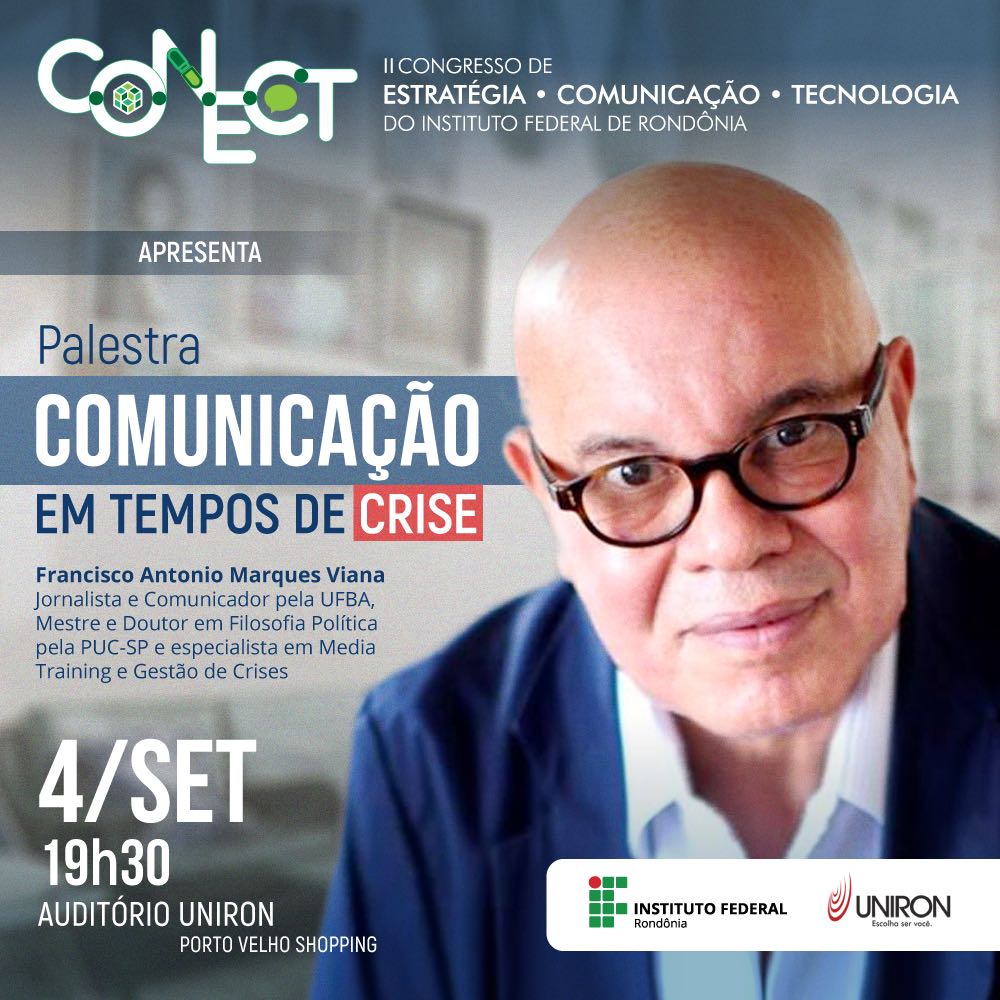 O IFRO – Instituto Federal de Rondônia, realizará no período de 04 a 06/09, o II Congresso de Estratégia, Comunicação e Tecnologia do IFRO – CONECT 2017 em parceria com a UNIRON.