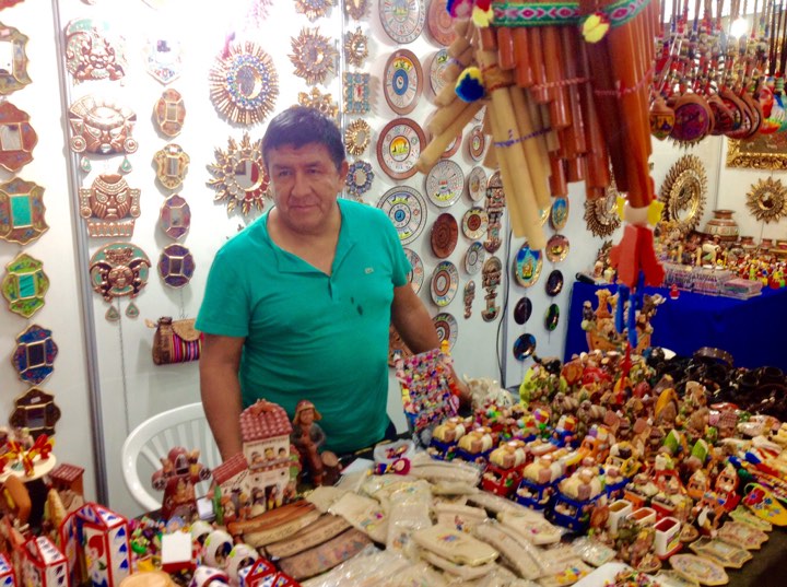No espaço destinado ao país andino, o artesão peruano  Fredy Medina expõe artesanato tradicional e contemporâneo com destaque para artes sacras e cusquenhos .