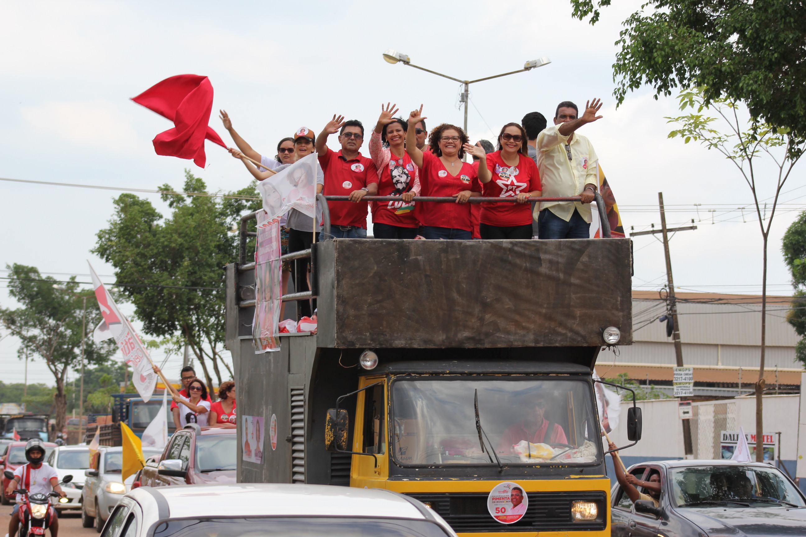 PORTO VELHO-O Partido dos Trabalhadores realizam neste momento uma grande carreata pelas ruas dos principais bairros de Porto Velho. O candidato ao governo, Pimenta de Rondônia e ao Senado, Fátima Cleide, além de vários candidatos a deputados federais e estaduais participam do evento. Vejam algumas fotos: