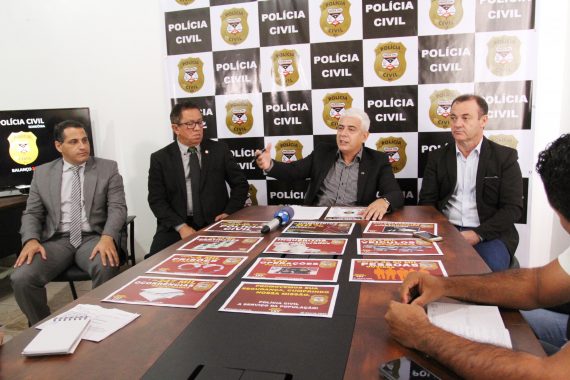 Participaram da coletiva de imprensa para informar o Balanço das Ações da Polícia Civil no ano de 2017, Eliseu Muller, delegado geral da Polícia Civil, Jeremias Mendes, chefe da Delegacia de Polícia Metropolitana, Raimundo Mendes, Delegacia de Polícia Especializada, Antônio Carlos dos Reis, delegado adjunto da Polícia Civil do Estado de Rondônia.