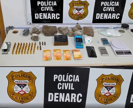 Durante a ação, a companheira do investigado foi presa após os policiais encontrarem drogas, munições e materiais usados no tráfico. Na residência foram apreendidos cerca de 2,7 kg de maconha, 100 g de cocaína, balanças de precisão, máquina de cartão, embalagens para venda de drogas, munições de vários calibres e R$ 339 em dinheiro.