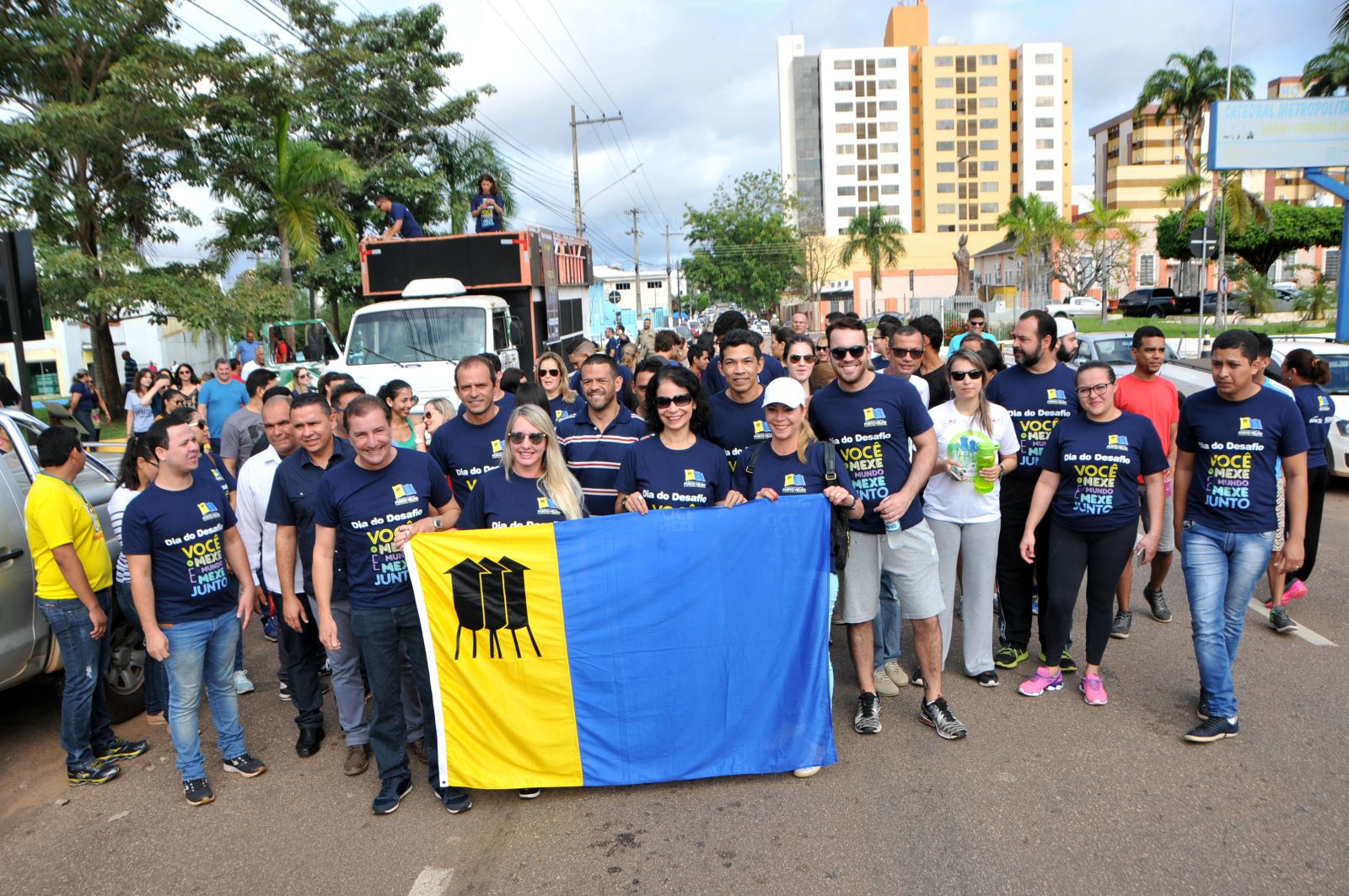O prefeito de Porto Velho, Hildon Chaves fez sua participação na manhã de ontem no Dia do Desafio, cuja capital concorre este ano com a cidade de Maynas no Peru. Num percusso que durou pouco mais de 30 minutos, entre o Palácio Tancredo Neves e Sesc Esplanada, onde aconteceu a abertura oficial do evento, dr Hildon Chaves seguiu numa caminhada junto com a primeira-dama Ieda Chaves, que é a coordenadora de honra; e secretária da Semes Ivonete Gomes, a coordenadora do Dia do Desafio; além da maioria dos secretários municipais e ainda servidores do gabinete.
