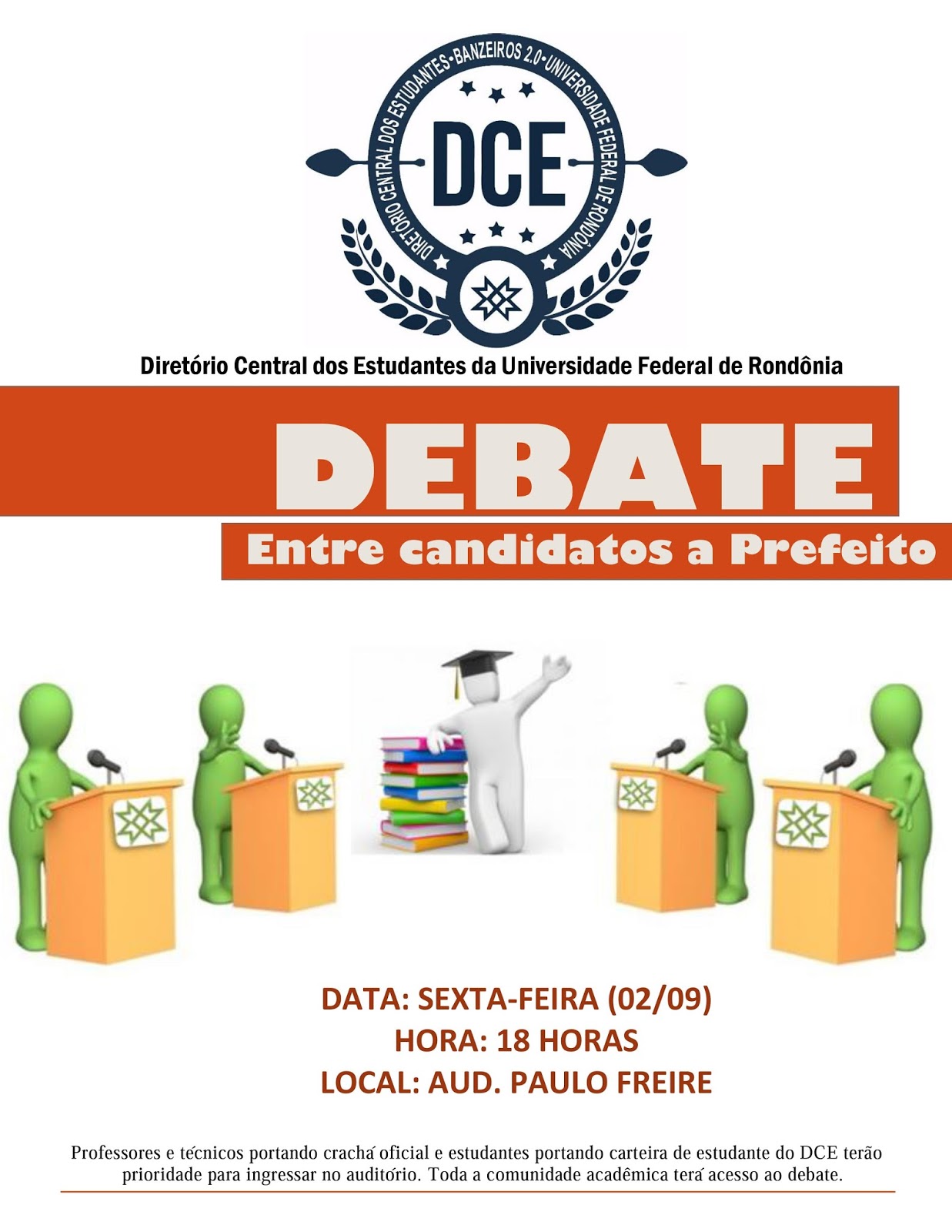 O debate será realizado no Auditório Paulo Freire, no Campus da UNIR em Porto Velho, BR 364, Km 9,5 sentido Acre, e não serão permitidas manifestações, torcidas organizadas, faixas e propagandas eleitorais no local.