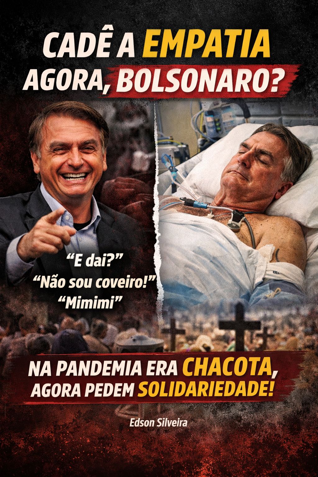 Hoje, quando Bolsonaro enfrenta problemas de saúde, o cenário é diferente. Seus aliados pedem orações, compreensão e respeito. Nas redes sociais, multiplicam-se mensagens pedindo empatia, humanidade e solidariedade.