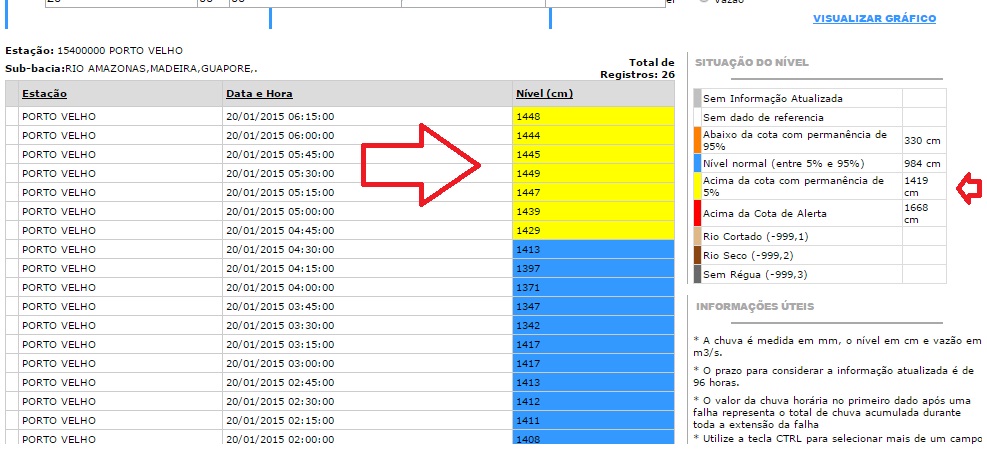 Em Porto Velho, a régua da ANA/CPRM mediu na manhã de hoje, terça-feira, 20 de janeiro, 14,49 metros, dois metros a menos da cota de alerta que é de 16,68. Uma nova enchente é iminente.