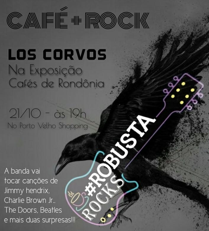 Neste sábado, 21, a partir das 19h, na exposição sobre Café da Amazônia, com ênfase na produção de Rondônia, que está acontecendo no Porto Velho Shopping, a banda LOS CORVOS vai levar ao RobustaRocks canções de Jimmy hendrix, Charlie Brown Jr., The Doors, Beatles e mais duas surpresas! Também será lançada nova marca de café especial de Rondônia.