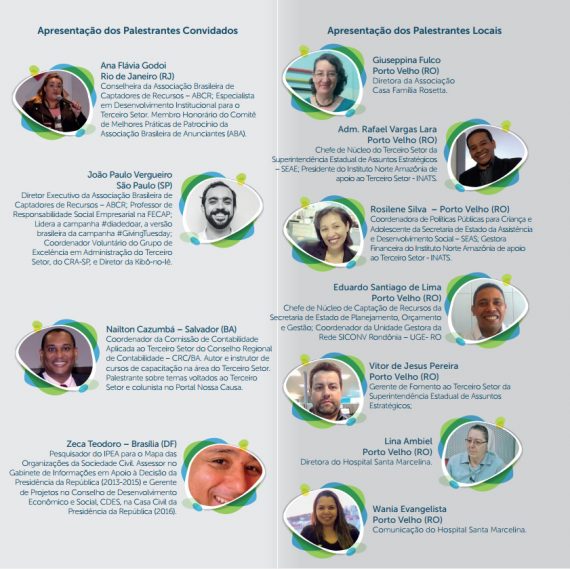 O destaque do evento, segundo a organização, é a relação de nomes dos especialistas que estarão no seminário como palestrantes e orientadores, como Zeca Teodoro, de Brasília, pesquisador do Instituto de Pesquisa Econômica Aplicada (Ipea) para o Mapa das OSC, e João Paulo Vergueiro, de São Paulo, diretor executivo da Associação Brasileira de Captadores de Recursos (ABCR), entre outros que, pelo currículo, provocaram uma corrida para o seminário.