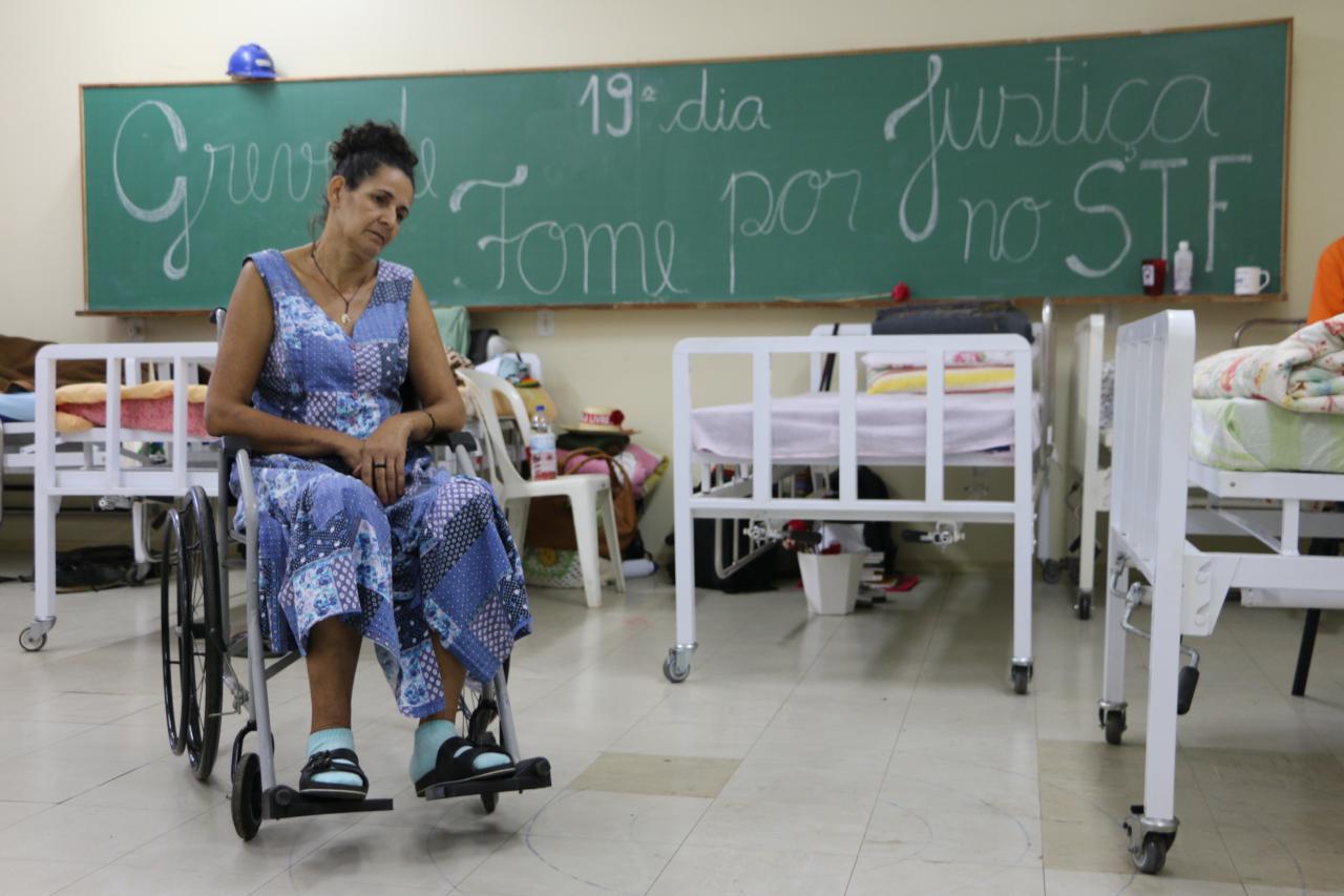BRASILIA-Ao 19º dia em Greve de Fome por Justiça no STF, os sete grevistas – Frei Sérgio Görgen e Rafaela Alves (do Movimento dos Pequenos Agricultores – MPA), Luiz Gonzaga, o Gegê (da Central dos Movimentos Populares – CMP), Jaime Amorim, Zonália Santos (MST/RO, de Ariquemes) e Vilmar Pacífico (do Movimento dos Trabalhadores Rurais Sem Terra – MST), Leonardo Soares (do Levante Popular da Juventude)  – se encontram com a saúde bastante fragilizada e passam a fazer uso de camas hospitalares para seu repouso e de cadeiras de rodas nos deslocamentos.