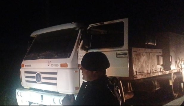 Pouco tempo depois, o caminhão foi localizado na Linha Gaúcha, por outra guarnição.