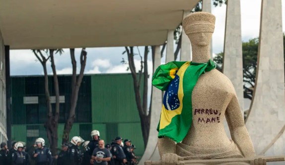 “O que se colhe dos autos é a prova única de que a ré esteve em Brasília, na Praça dos Três Poderes, no dia 8 de janeiro de 2023 e que confessadamente escreveu os dizeres “Perdeu, Mané” na estátua já referida”, justificou o ministro.