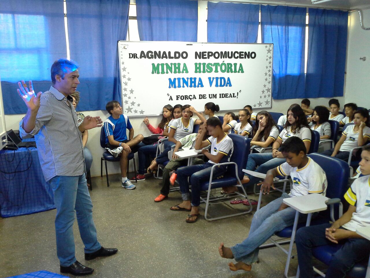 Agnaldo Nepomuceno, chefe de gabinete do deputado estadual Só na Bença (PMDB), apresentou uma palestra relacionada ao sucesso e ao ideal para alunos, pais, professores e gestores da Escola Estadual Professor Valdir Monfredinho, localizada em Pimenta Bueno.